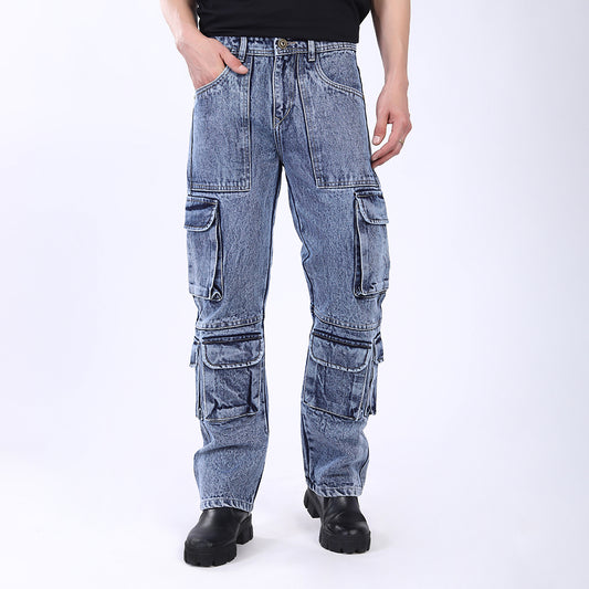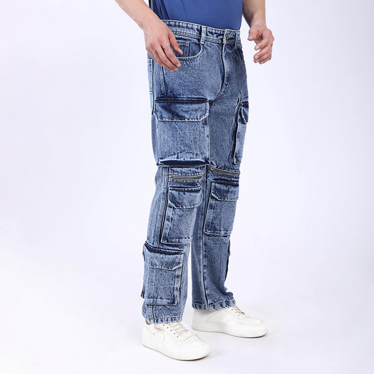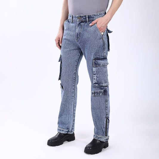 LIGHT BLUE BAGGY CARGO FIT JEANS 4924-2